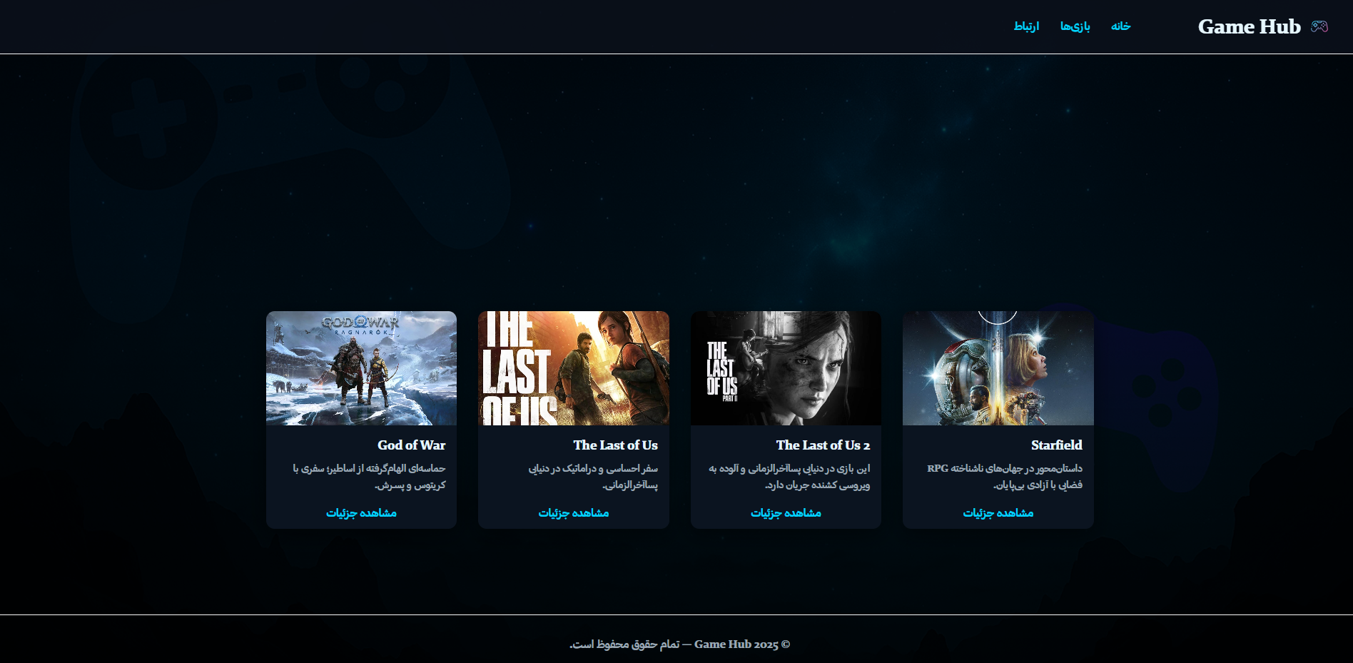 وبسایتی برای کشف دنیای بازیها، با طراحی خلاقانه و تجربه کاربری روان.